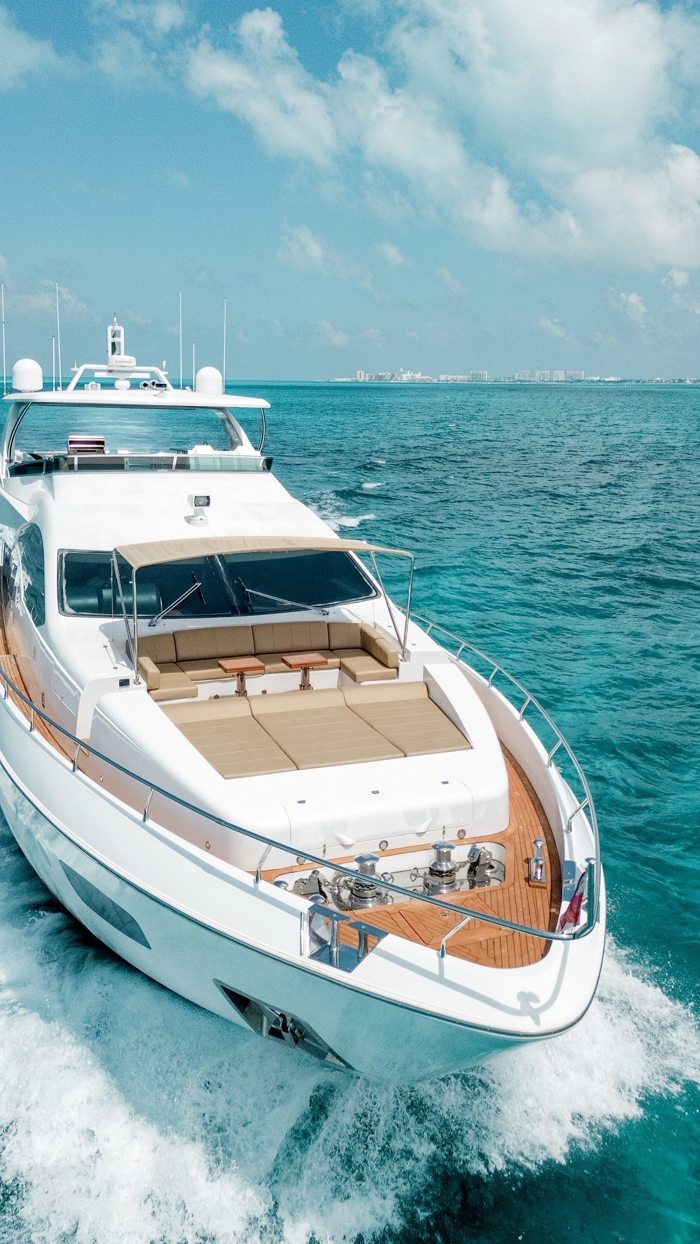 Experience the ultimate luxury yacht rental in Cancun aboard this stunning 95 ft Azimut with flybridge, available exclusively with Riviera Charters Cancun. Designed for comfort, style, and unforgettable moments, this yacht offers one of the finest private yacht charters in Cancun with food and drinks included.
