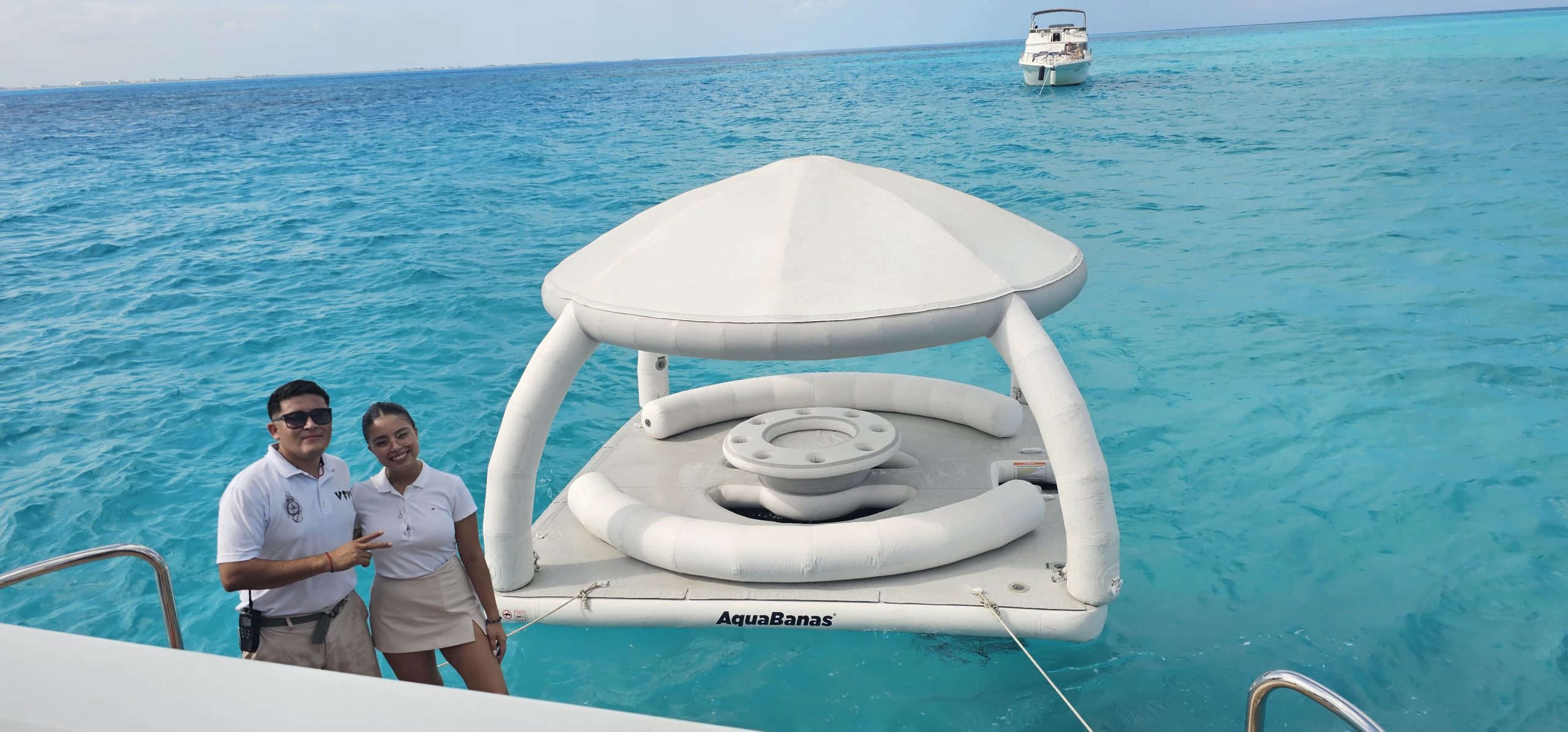 Join your captain and crew for an exciting adventure departing from Cancun heading towards Isla Mujeres.